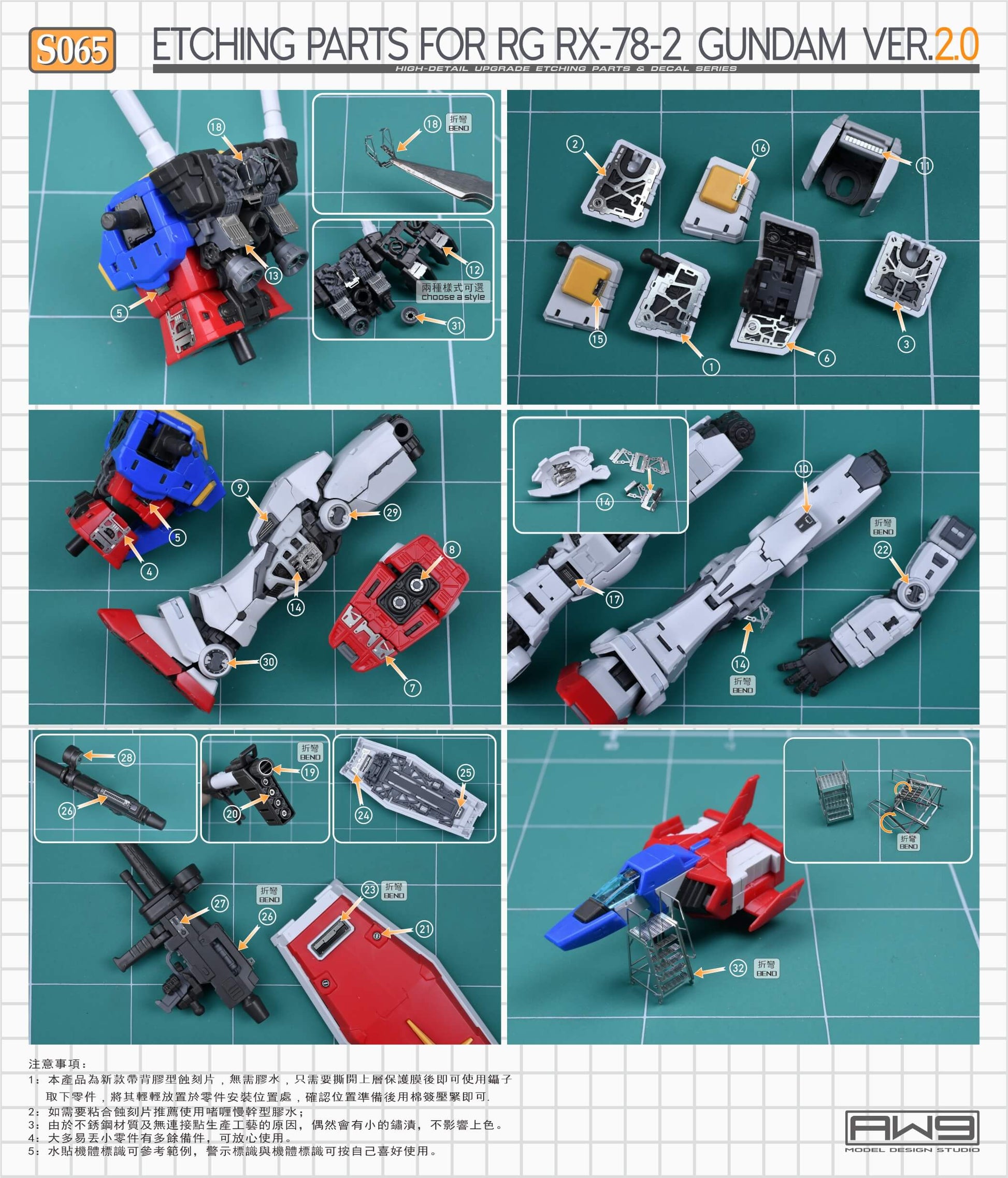AW9 S65 Etching Parts with Decals for RG RX-78-2 Gundam Ver. 2.0