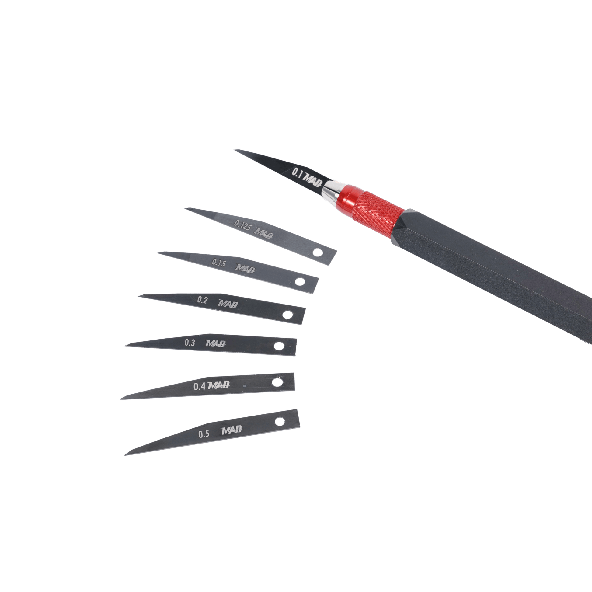 Our D.L.C. (Diamond-Like Carbon) coating, commonly used for CNC cutting tools, increases hardness, reduces friction, and enhances wear resistance of these engraving blades. Designed for smooth and precise engraving on plastic model kits, resin, and epoxy, the D.L.C. coating ensures excellent control and durability.
