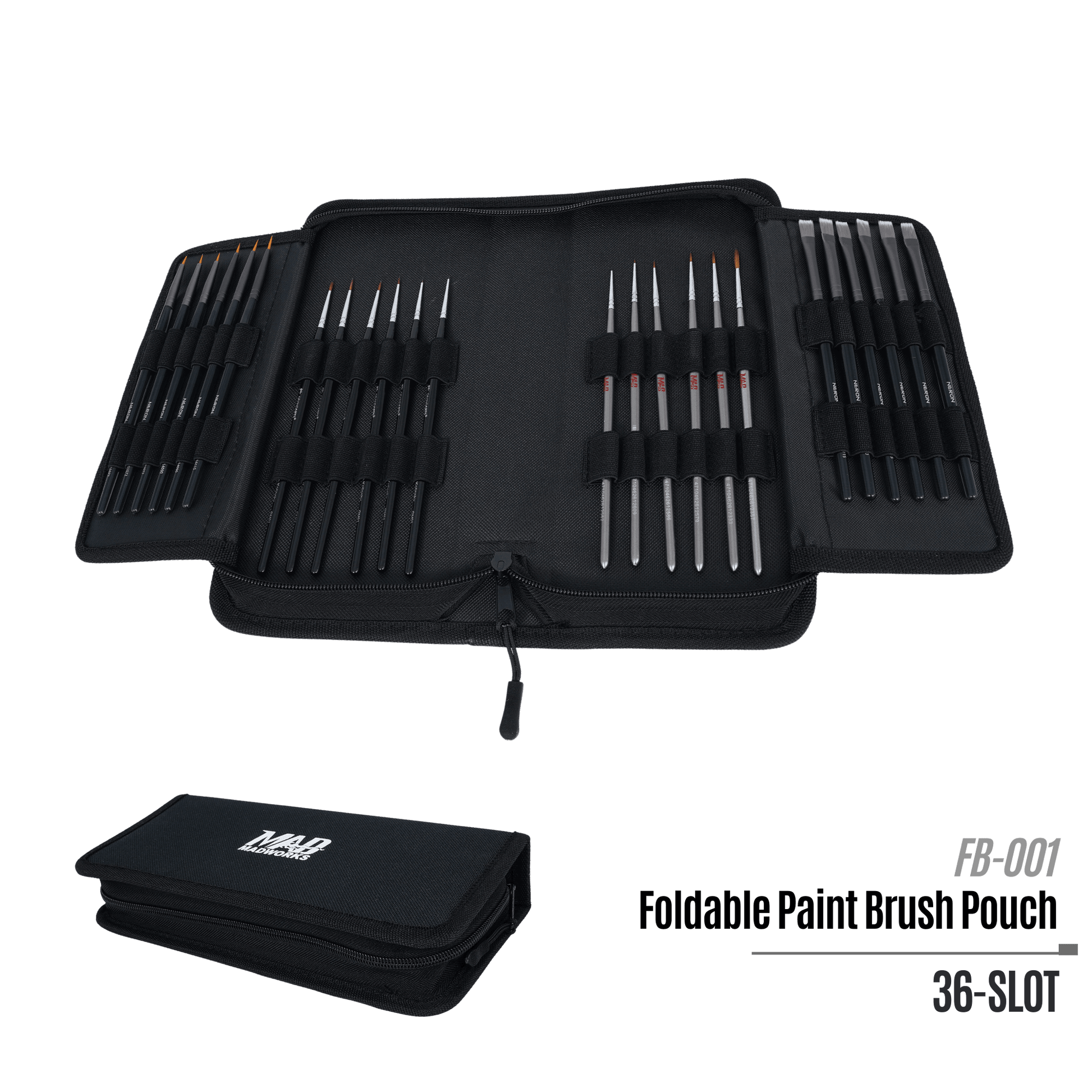 Spacious & Portable: Holds up to 36 brushes and folds compactly for easy carrying.