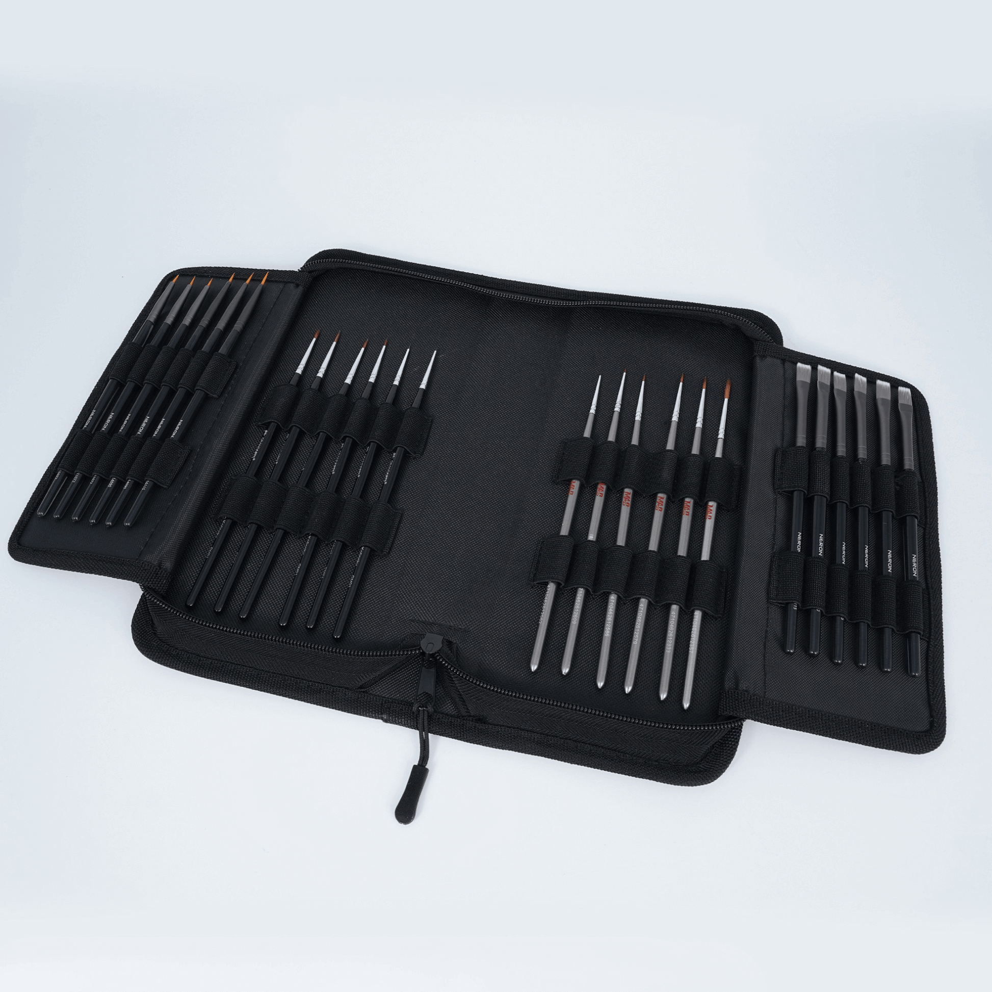 Secure Storage: Each compartment includes two elastic bands to keep brushes steady and protected.