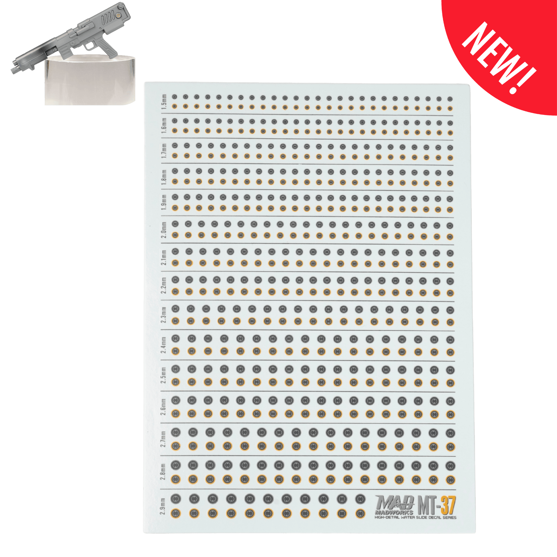 Enhance your scale models with the MT-37 (S) Waterslide Decal – Circle. Available in multiple diameters from 1.5mm to 2.9mm, these high-quality decals are perfect for adding precise details to your models.
