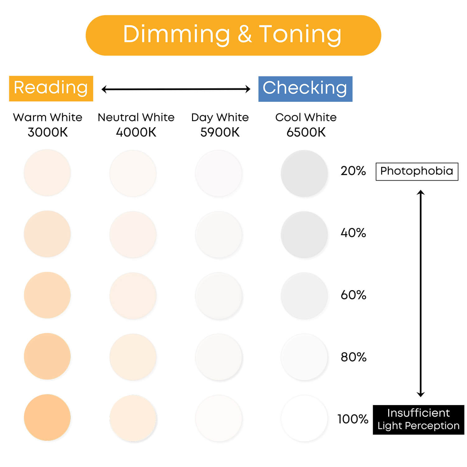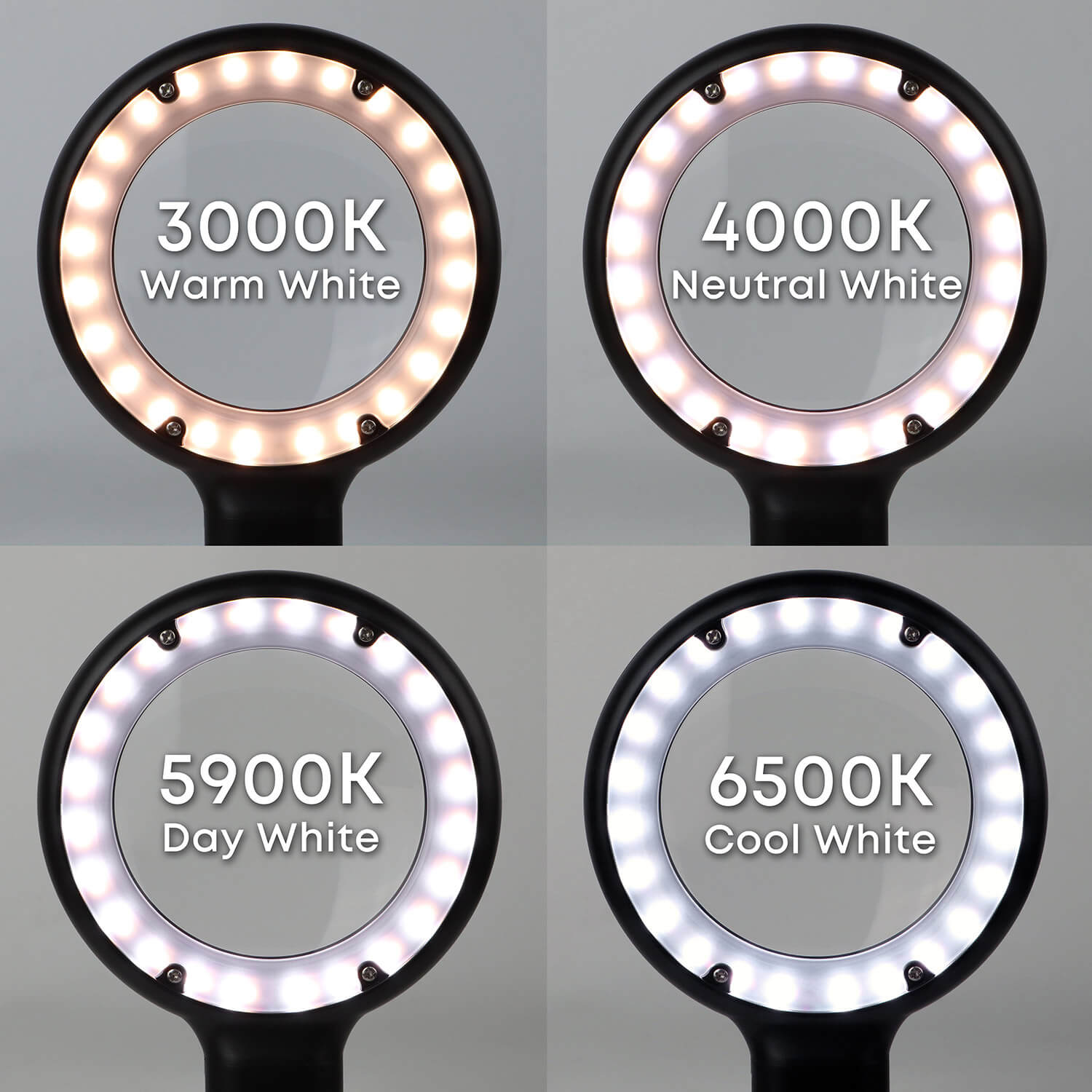 OHBIG offers 4 color temperature settings: warm white (3000K), neutral white (4000K), day white (5900K) and cool white (6500K).