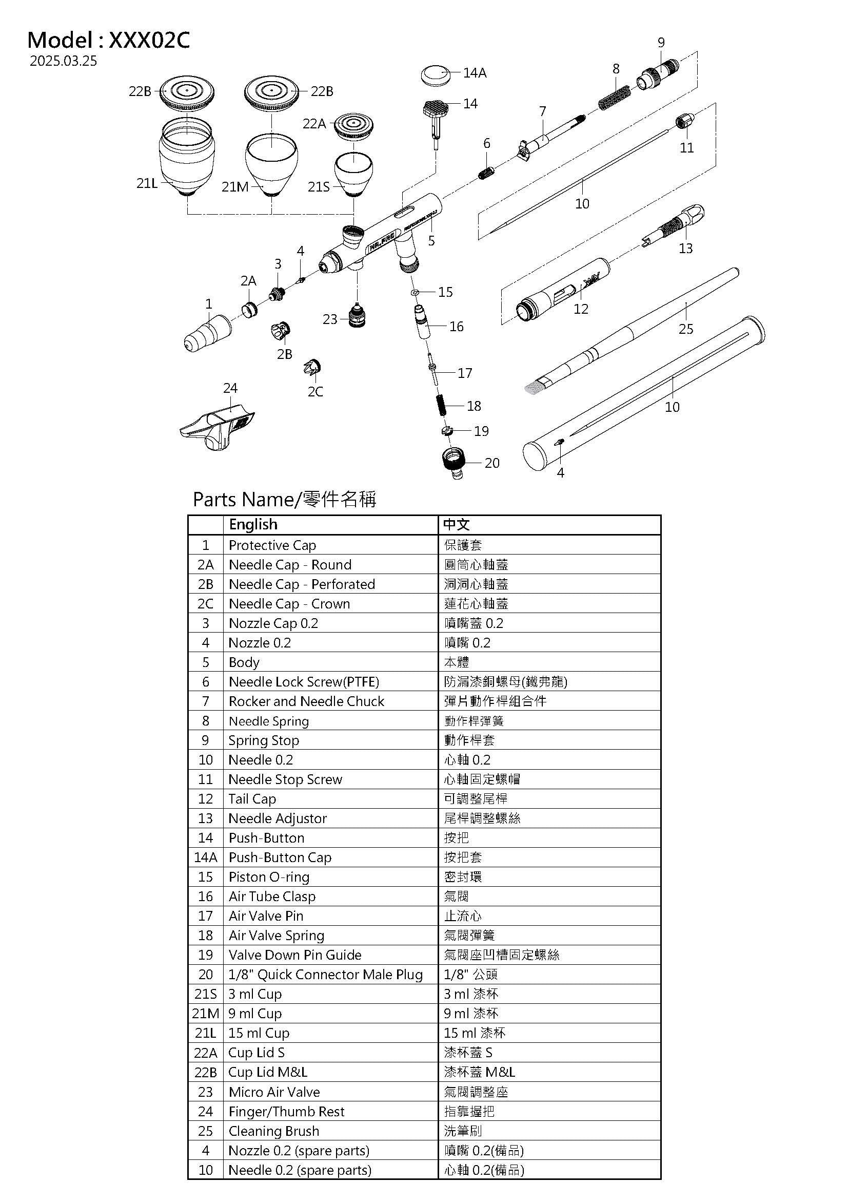 Buse de rechange pour aérographe professionnel HEX-02 Mr. Pro 0,2