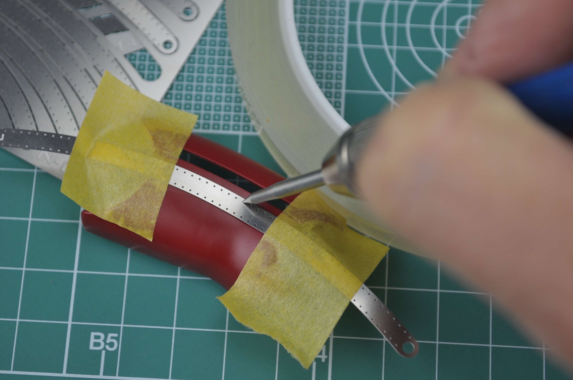 Kleben Sie das ausgeschnittene Carving-Tape auf das Modellteil, um die Paneellinie zu erstellen.