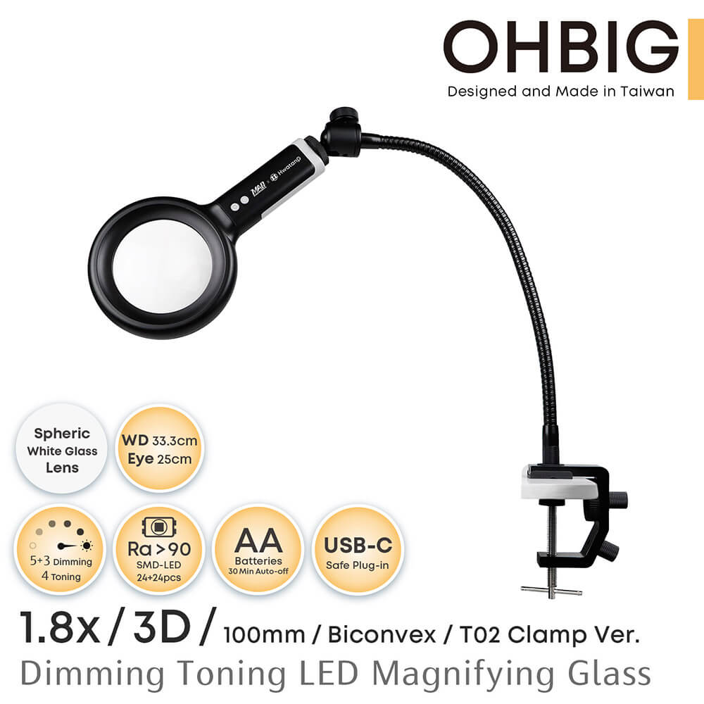 Die Madworks x Hwatang OHBIG LED-Lupe ist eine Lupe in Laborqualität speziell entwickelt für Modellbauer und Handwerker, die auf visuelle Präzision angewiesen sind. Die eingebaute LED Beleuchtung bietet verstellbare Helligkeit und 4 Farbtemperaturmode.