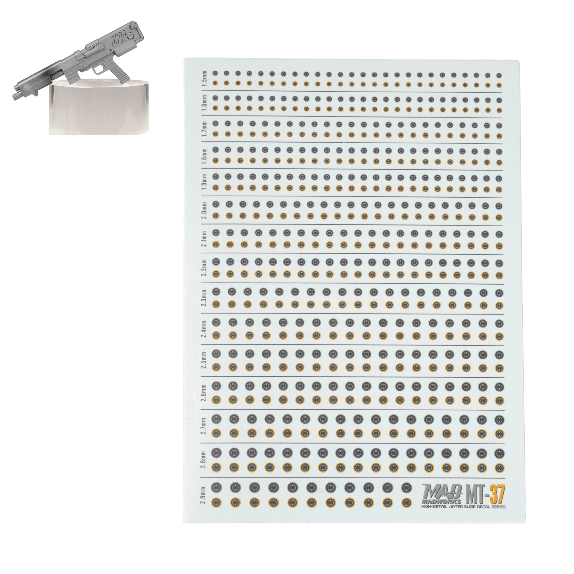 Verbessern Sie Ihre Modellbauprojekte mit dem MT-37 (S) Wasserschiebebild – Kreis. Erhältlich in Durchmessern von 1,5 mm bis 2,9 mm, ideal für präzise Details auf Modellen.